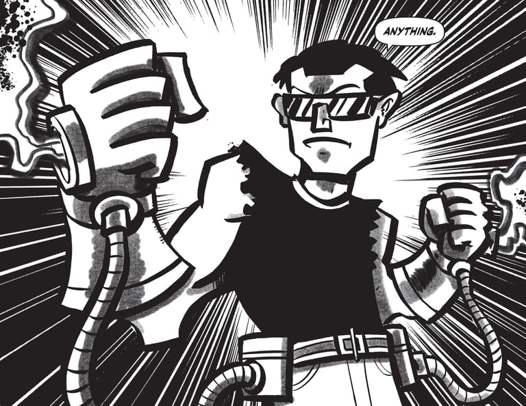 Ray's not a really super villain - he's just a victim of circumstance who made a few bad decisions because he was upset that his girlfriend dumped him. Like building a pair super powered gloves that he invented himself. And using them to blow up the building he worked at. And then stealing a bunch of money. And putting on a costume and calling himself The Blaster. And joining up with arch-villain Colonel Kaboom to make a little extra cash…but none of those things really make Ray a "Bad Guy". Right?